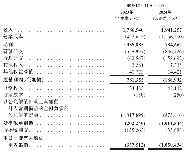 招股书显示,在过去的2023年和2024年,映恩生物的营业收入分别为人民币17.87亿和19.41亿元,相应的研发开支分别为人民币5.59亿和8.37亿元,相应的净亏损分别为人民币3.58亿和10.50亿元。
