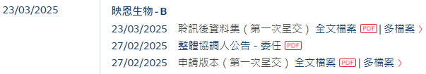 映恩生物聆讯后招股书链接: